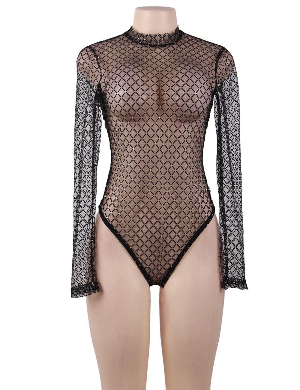 This mesh teddy is made from a very sheer fabric, this high-neck bodysuit is sexy, sexy, sexy.