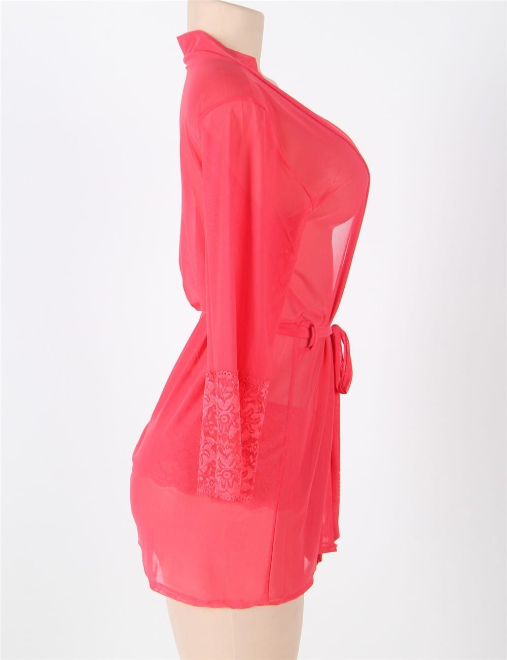 This is super soft and super comfortable to wear. The kimono fabric feels like heaven to the skin. And really gorgeous lace panties, too! I ordered the pink one. I’m getting myself the black next time.